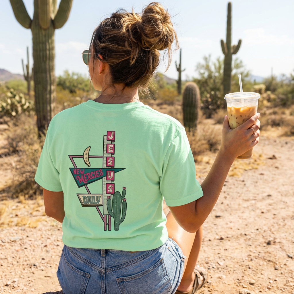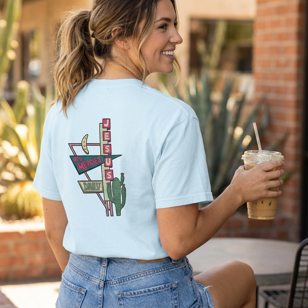 Start each day with intention and comfort in this unisex garment-dyed heavyweight t-shirt. Crafted from premium fabric, it delivers exceptional durability and a soft, lived-in feel that improves with every wear. The thoughtful "Jesus New Mercies Daily" message serves as a meaningful reminder of grace and renewal. Perfect for everyday wear, layering, or as a gift for those seeking both quality and spiritual encouragement. Available in versatile color ways that complement any wardrobe.